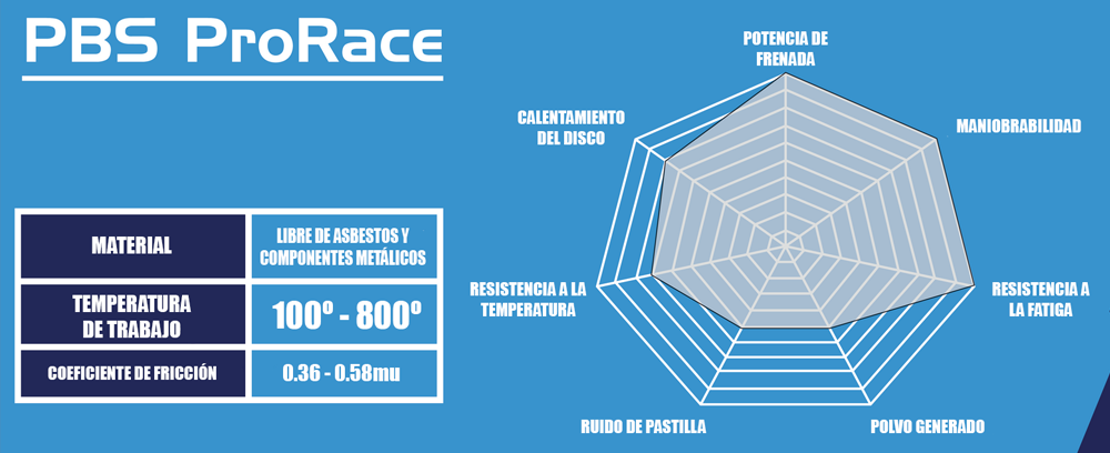 Este compuesto contiene materiales cerámico metálicos que ofrecen una mordiente inicial más alta que el compuesto Pro Race, con un excelente control y tacto, ofreciendo un coeficiente de fricción de 0.40 a 0.48mu. Este compuesto está desarrollado para un uso deportivo de calle, uso suave ocasional de circuito o en condiciones húmedas, así como para eventos deportivos donde se usan neumáticos de poco agarre. Al tener menos mordiente que el compuesto Pro Race facilita el control de la frenada y ayuda a evitar el bloqueo de las ruedas en las situaciones más extremas. También son menos ruidosas y desprenden menos polvo.